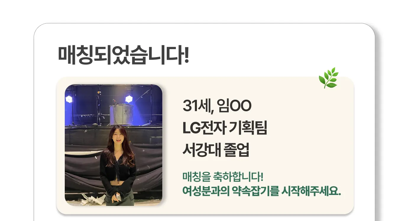 바쁜 업계 특성상 (불필요한 시간낭비, 연락 없이) 회사 스케줄에 맞게 편하게 소개팅을 하고 싶으셨던 36세 박OO 남성회원님의 후기입니다.